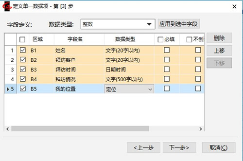 1.在设计模板的时候,“我的位置”字段,要选择数据类型为“定位”,如下图所示: