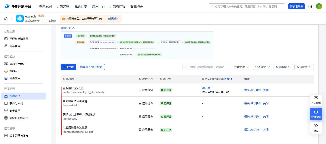 选中左侧【权限管理】菜单,右侧点击【开通权限】: