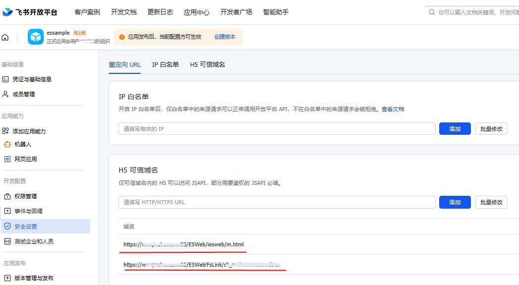 配置H5可信域名,需要配置两条: